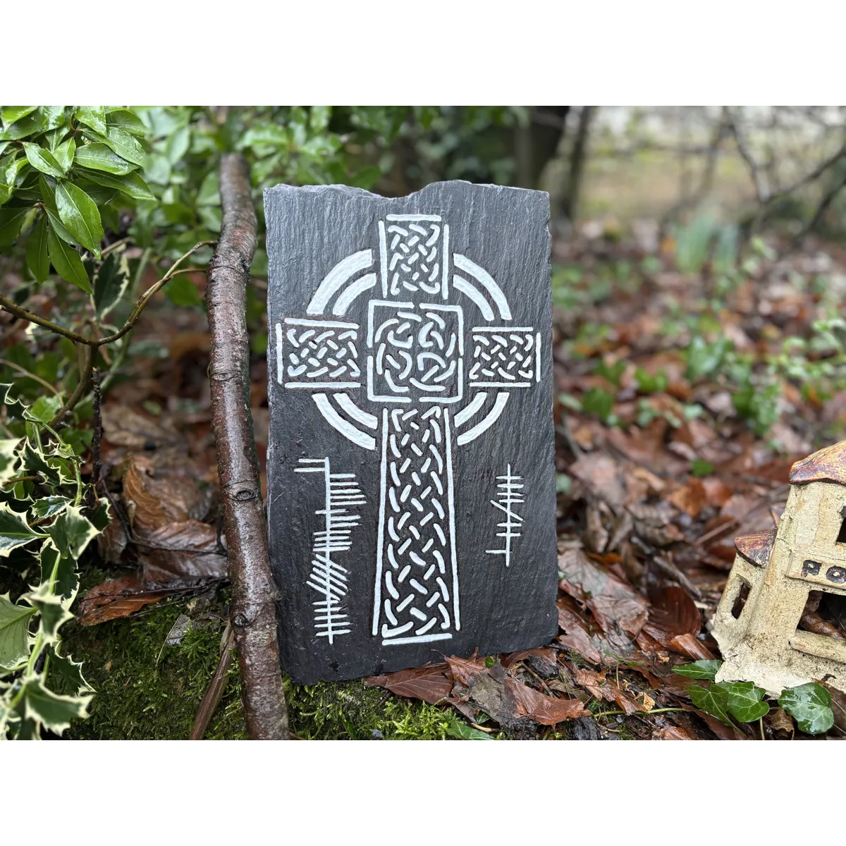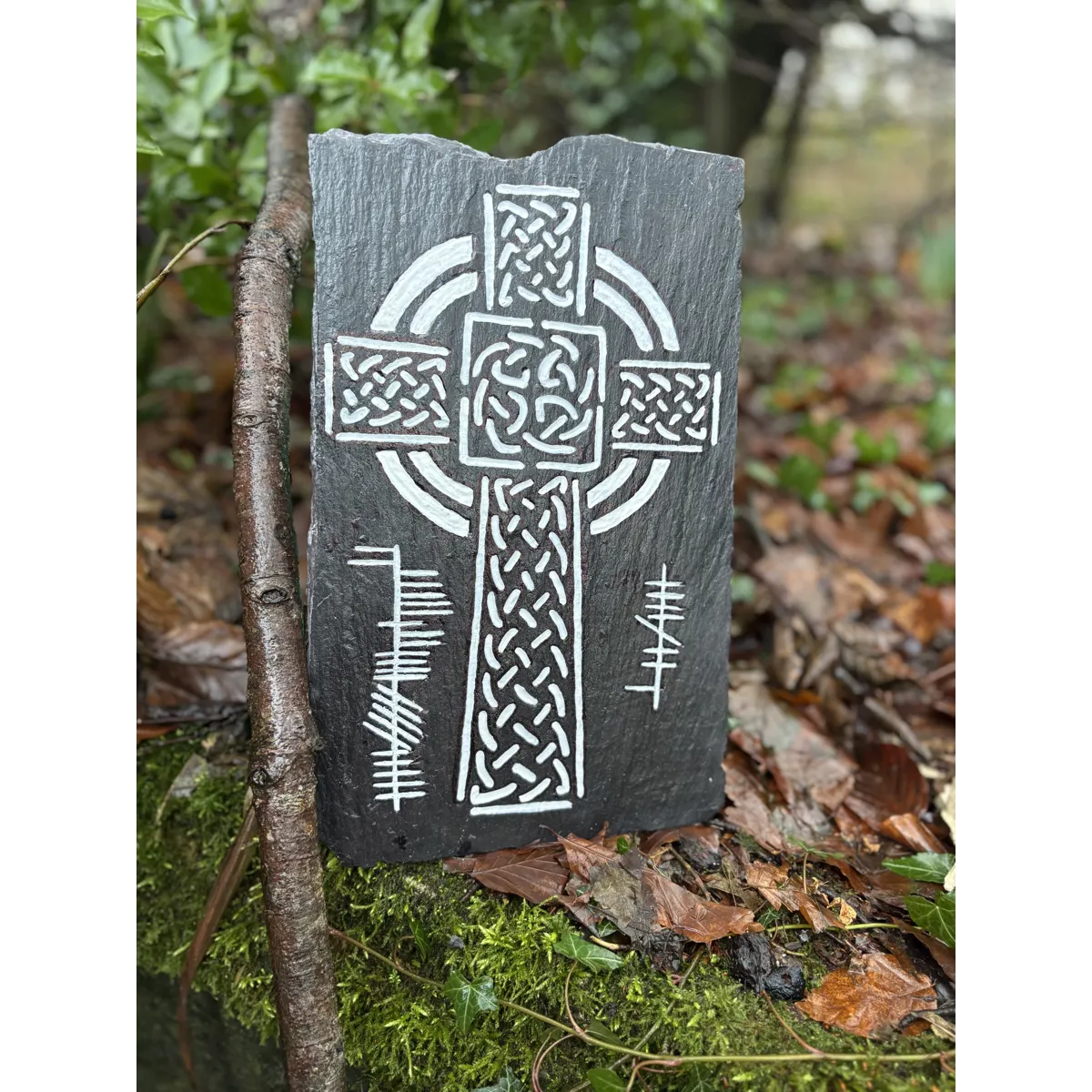 Celtic Cross Carved Reclaimed Slate with Ogham Inscription