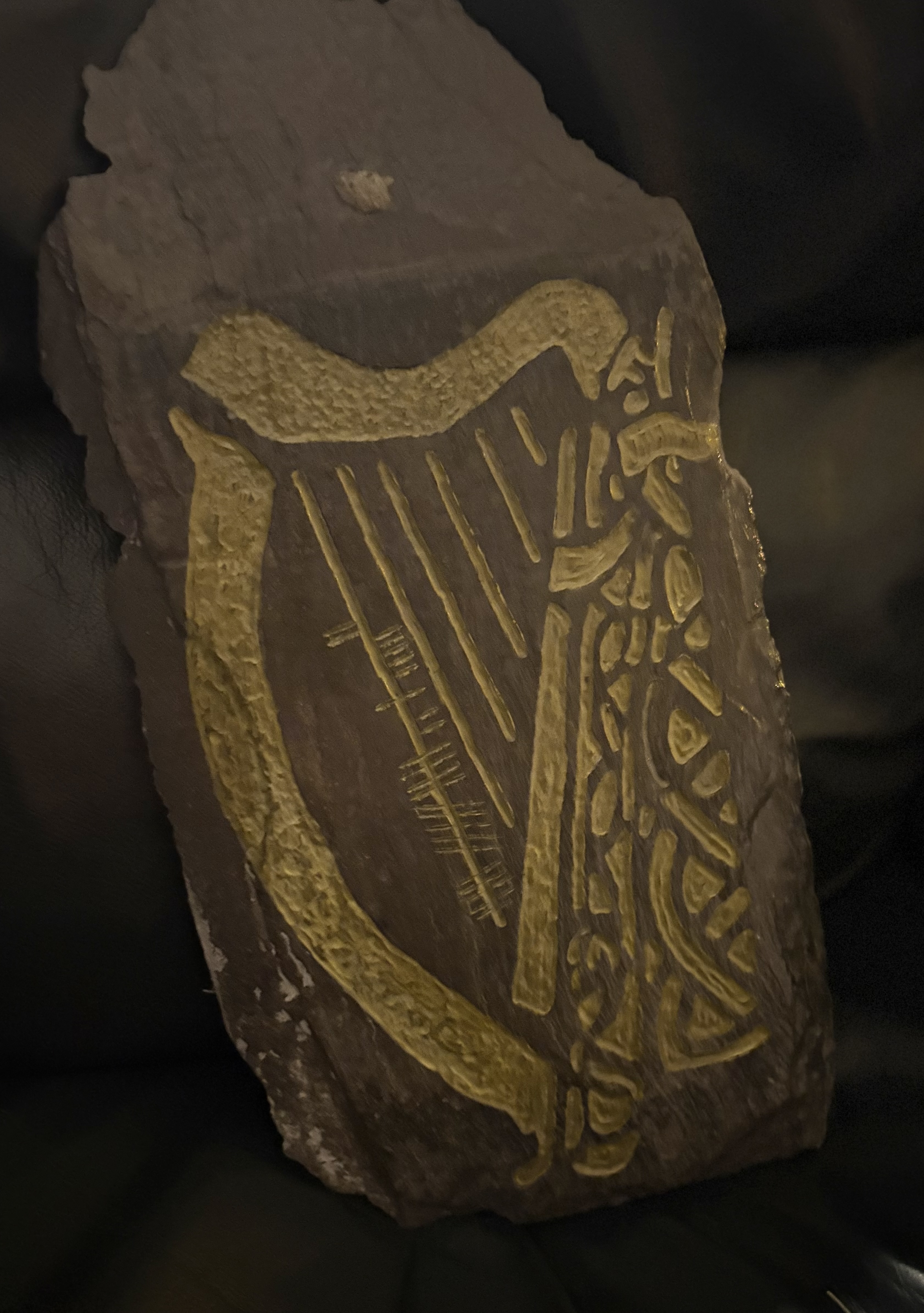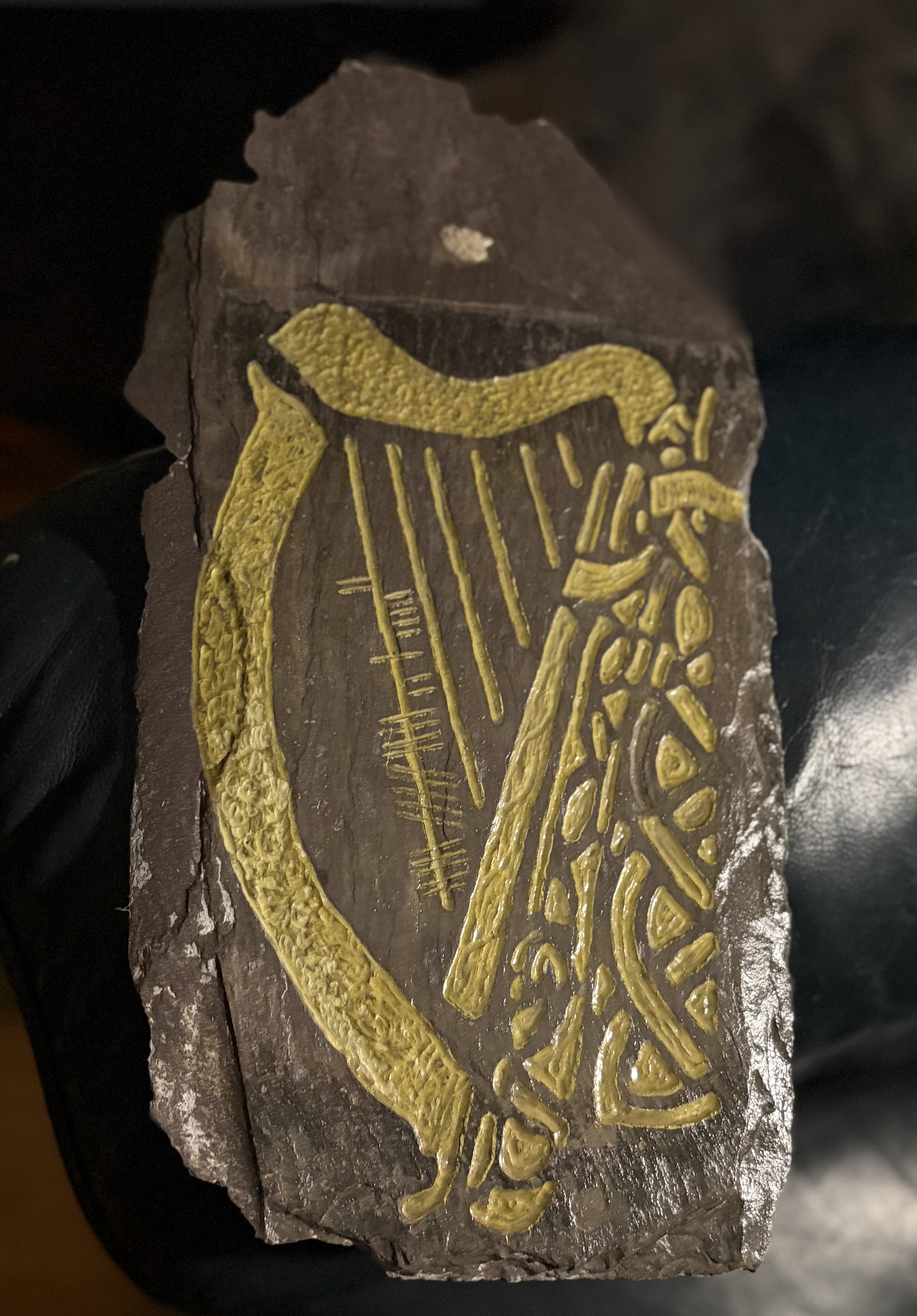 Introducing the stunning Historical Reclaimed Slate “Ireland” Harp, a true masterpiece that beautifully blends artistry with history. This exquisite harp is not just a musical instrument; it's a piece of Ireland's rich cultural heritage, crafted from reclaimed slate that tells a story of its own. Each harp is unique, showcasing the natural variations in the slate, which adds character and charm to its design.