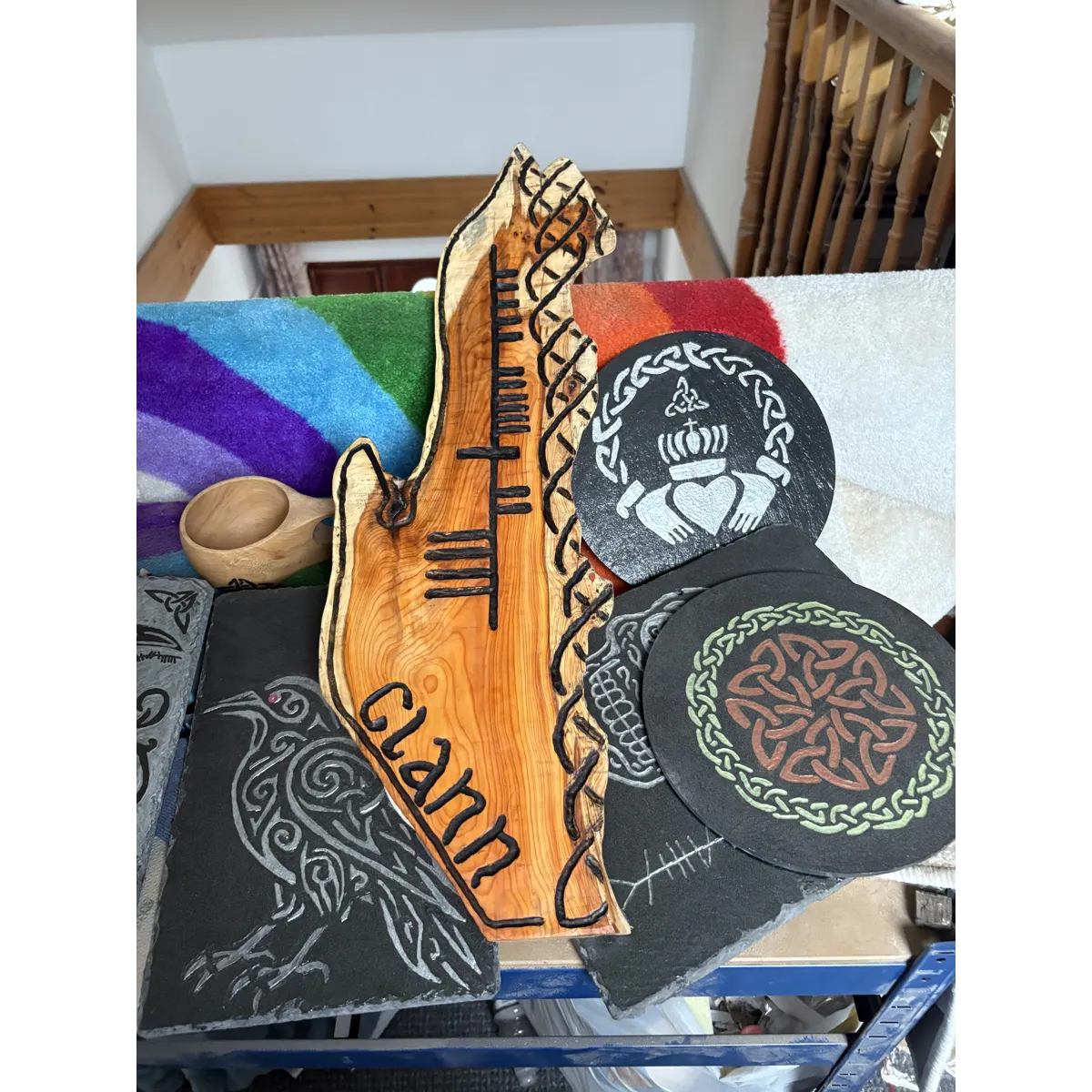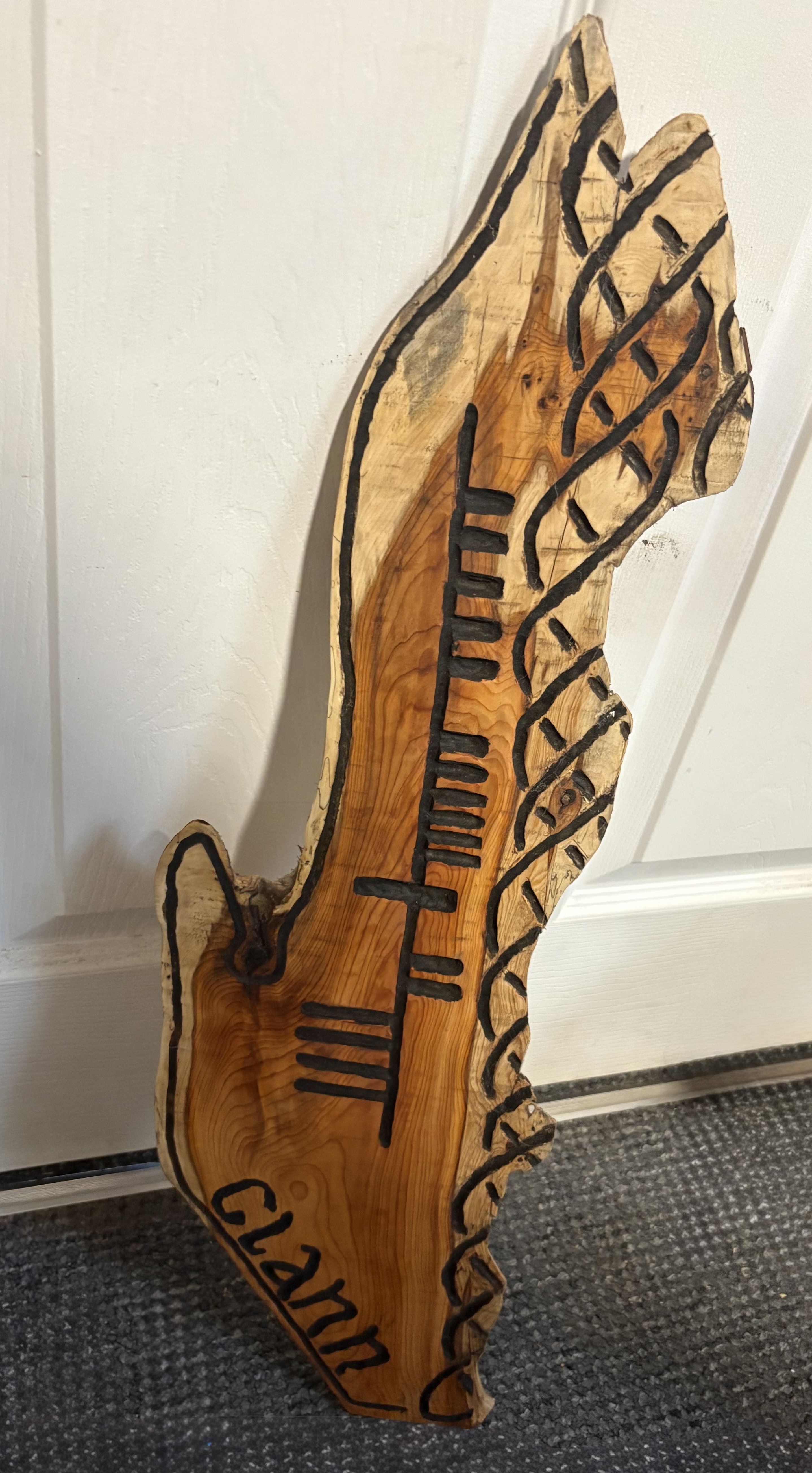 Yew Inscribed “Clann” Wall Art- ‘Family on Yew’ Yew Inscribed “Clann” Wall Art- ‘Family on Yew’